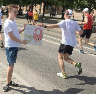 Under Stockholm Marathon-dagen fick skyltarna och power-kuddarna mycket uppskattning.