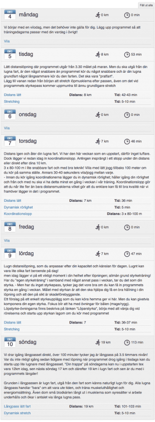 Här nedan kan du se en skärmdump från ett träningsprogram med den allmänna veckotexten som berättar litet om den första träningsveckan.