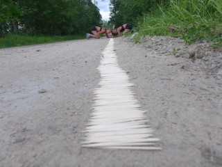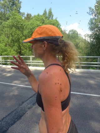 Sista dagen vi sprang i Lettland hamnade vi i ett formidabelt oväder! Blixtarna stod som spön i backen och vi sprang och talade om för oss själva att det är väldigt liten sannolikhet att bli träffad av blixten. Vi beundrade praktverken och önskade att åskan skulle mullra än högre. Sen kom blixten och knallen samtidigt, precis ovanför våra huvuden. Då bleknade vi, det var som att ett pistolskott smällt av.