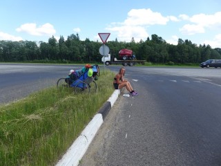 En annan regnig kväll hade vi bestämt oss för att tälta i blötan då det inte verkade finnas någon annan utväg. Vid en liten mack frågade vi, utan förhoppning, om kvinnan i kassan visste något ställe att sova på. Hon skakade på huvudet. Strax efteråt kom en man på cykel, han hade en konversation med henne och jodå, det fanns visst rum fem kilometer längre bort. Det var mannens kompis som drev stället. Det var ingen personal där för tillfället men ett par åkte dit och satte en nyckel i dörren till ett av rummen där vi kunde bo.