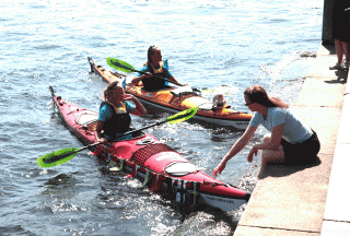 I härligt sommarväder, med klarblå himmel och nästan vindstilla, dyker två kajaker upp utanför Riddarholmen. Det är Carina Borén och Kristina Paltén som kommer paddlande över Riddarfjärden. Klockan två minuter över tolv kliver de iland vid Stadshuset efter 319 mils löpning genom östra Europa och sedan 45 mils paddling över Ålands hav.