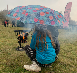 – Det är mer mys än rusk tycker jag, skrattade Anna Svensson som höll värmen innan start genom att dricka varm choklad och värma händerna vid en eldkorg.