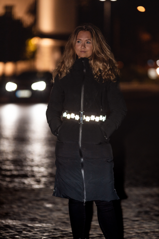 – För mig började reflexintresset hösten 2011. Jag insåg plötsligt att både ungdomar och vuxna sprang runt svartklädda på stan i mörkret och inte syntes. Jag bestämde mig för att skapa reflexer som man kan använda även om man vill klä sig snyggt och vara lite fåfäng. Du ska inte behöva välja om du vill klä dig snyggt eller säkert. Tre år senare lanserade jag mina första reflexprodukter.