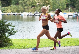 Duell ända in på mållinjen. Hanna Lindholm, Huddinge AIS, fick till slut ge sig för starka etiopiskan Ayantu Eshete i kampen om segern.