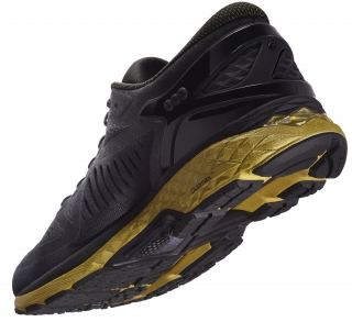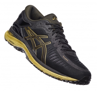 ASICS pratar gärna om sina nya teknologier, men många kommer nog att fastna för den lyxiga designen. Svart med guldfärgad dekor för herrmodellen och kopparfärgad för dammodellen.