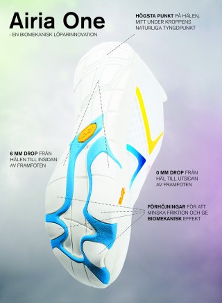 Efter mer än tjugo års utveckling och över 5 000 tester står Airia One – en svensk uppfinning och helt ny typ av löparsko – inför en global lansering. Airia One kombinerar de senaste årens trend av lätta skor med en biomekanisk konstruktion, inspirerad av hjulet för att ge löparen bättre fart och flyt i löpningen. Tester visar att löpare blir 1-2 procent snabbare i Airia oavsett förmåga och löpstil, vissa ända upp till sju procent.